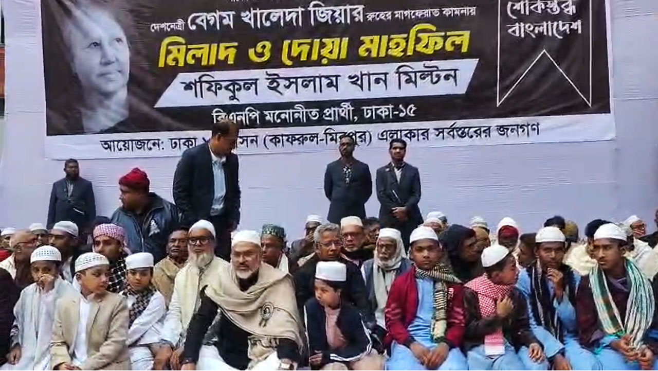 আসন্ন জাতীয় সংসদ নির্বাচনে ঢাকা-১৫ আসনে বিএনপি মনোনীত প্রার্থী শফিকুল ইসলাম খান মিল্টনের উদ্যোগে সাবেক প্রধানমন্ত্রী ও দেশনেত্রী বেগম খালেদা জিয়ার রুহের মাগফিরাত কামনায় মিলাদ ও দোয়া মাহফিল অনুষ্ঠিত হয়েছে। মিরপুরের মনিপুর উচ্চ বিদ্যালয় ও কলেজ মাঠে এই অনুষ্ঠানের আয়োজন করা হয়।